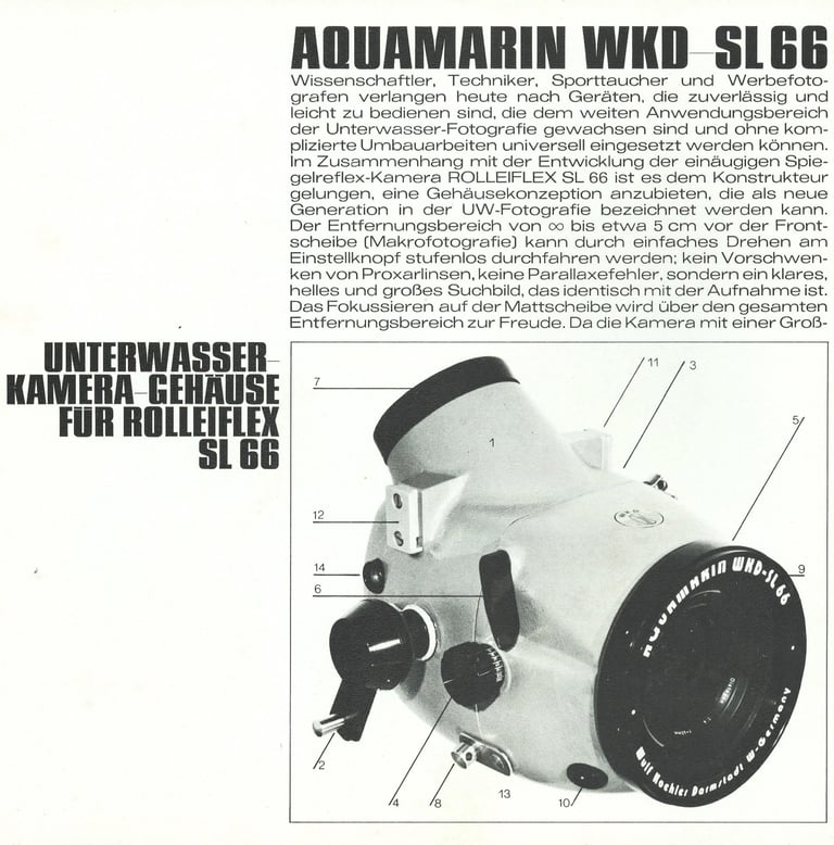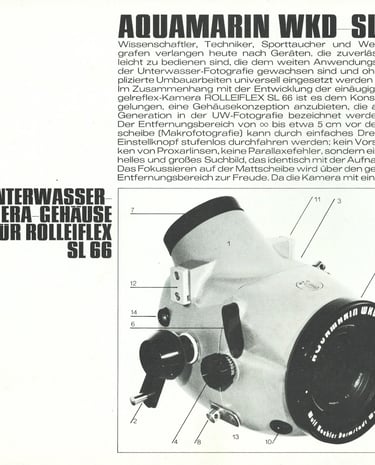 After this meeting Wulf started a close business relationship with the Rollei Company in Germany. The first ten housings were delivered within the next year. The housing was published under the name “AQUAMARIN WKD SL66”. At this time, Wulf was not allowed to use the name “Rolleimarin”, due to existing patent rights of the Rollei company.